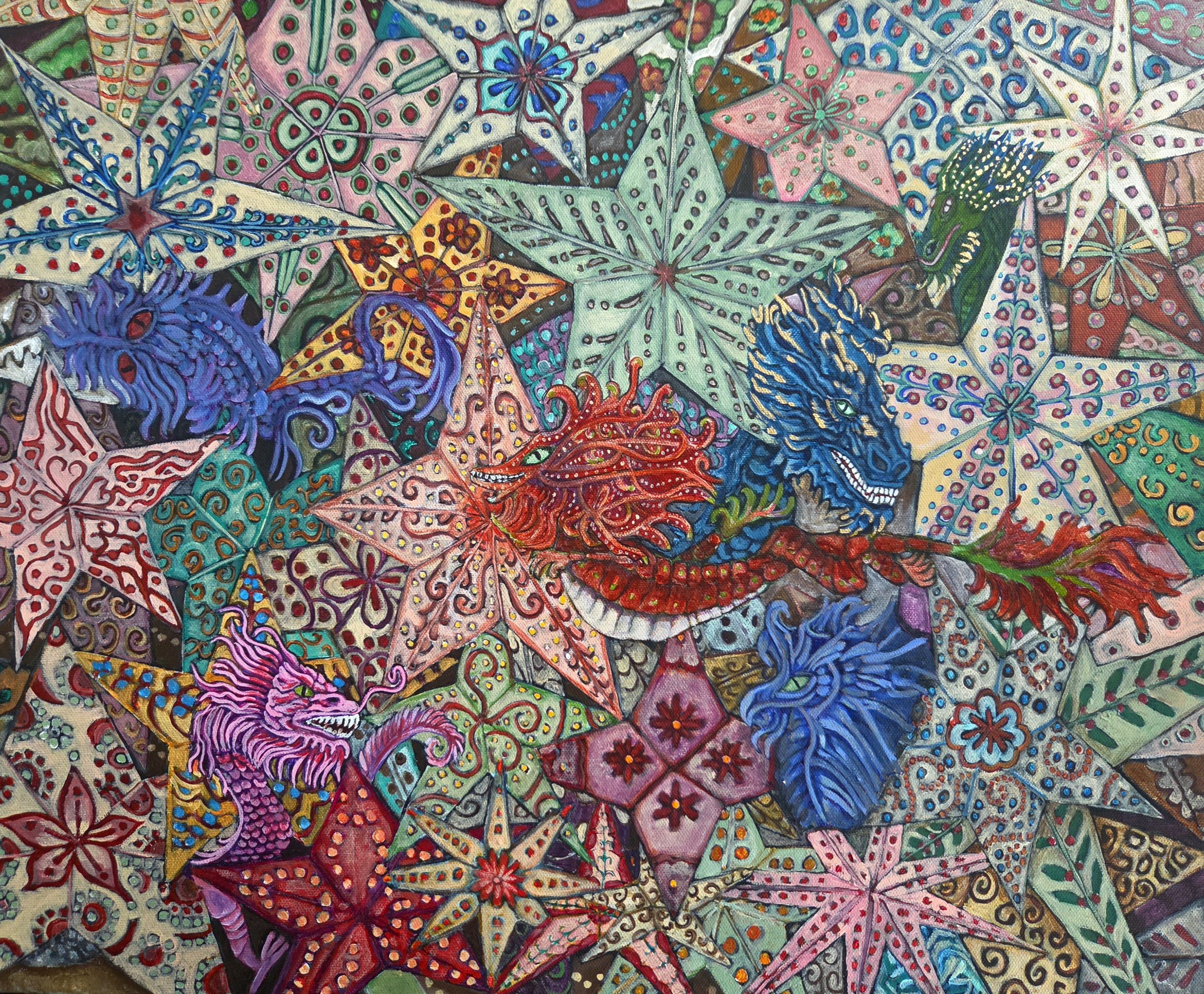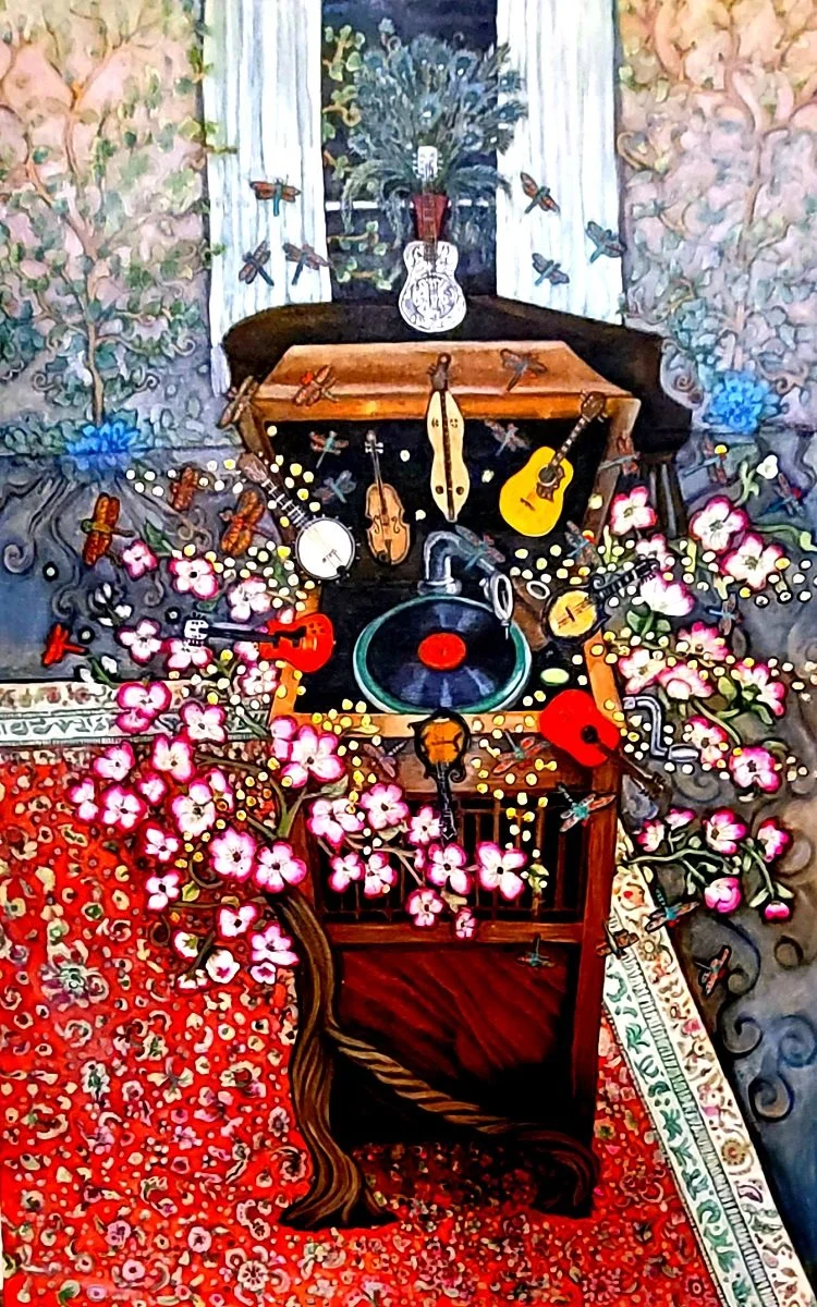 Michelle is an allegorical painter. Her compositions include nature, animals, symbols that translate classic meanings across cultures. These elements express emotion, physical and spiritual conflict, personal and collective history.